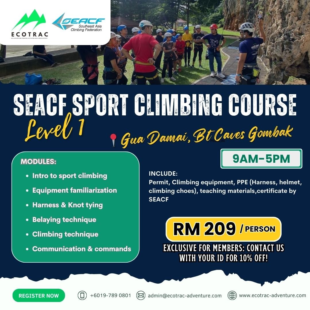 SEACF Sport Climbing Course Level 1 is a beginner-friendly certification course recognized by the Southeast Asian Climbing Federation (SEACF).